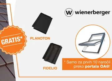 Prvim 10, ki boste preko portala OA@ naročili katerega od osnovnih strešnikov Tondach Planoton 10 (antracit barva) ali Fidelio (rdeča ali antracit barva) v količini min. 160 m², bomo podarili strešno okno SMARTPRO PVC 66 x 118 cm in 2 paketa vetrnih sponk (500 kom).*